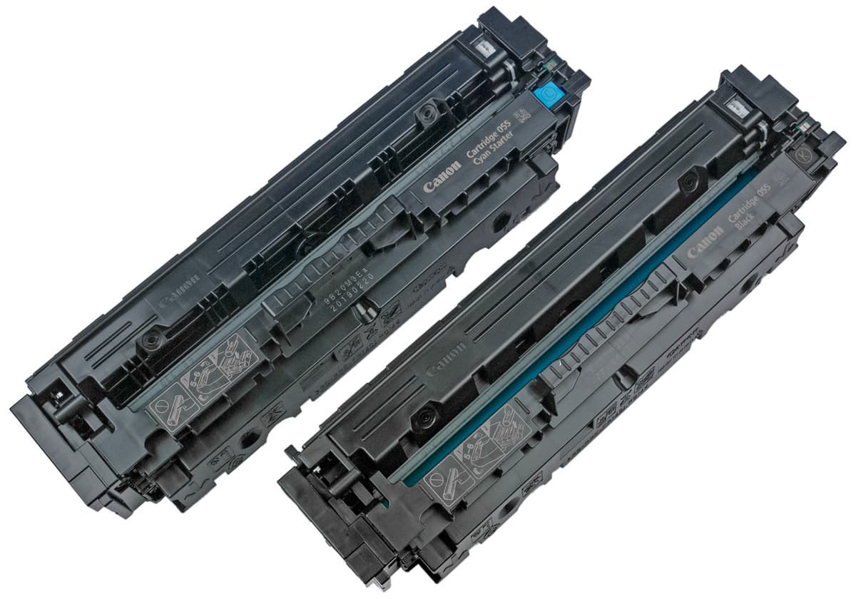 - 055 (с добавлением цвета — Black, Cyan, Magenta, Yellow), рассчитаны на 2300 черно-белых и 2100 цветных отпечатков,
