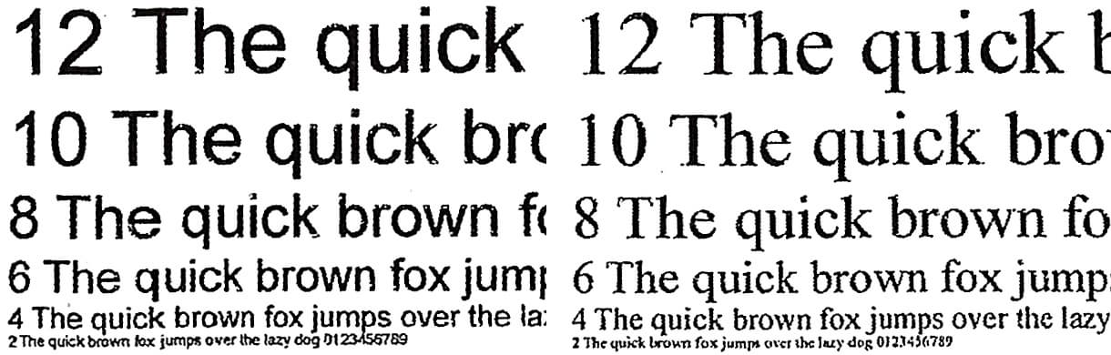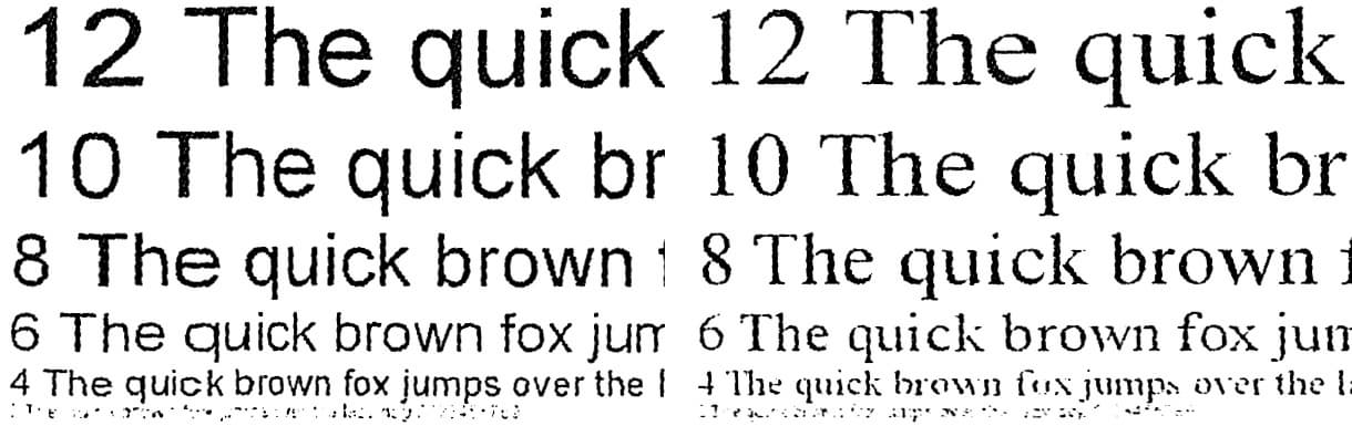 Сделанные с отпечатка, на котором отчетливо читаются шрифты 2-го кегля, копии получаются почти столь же неплохо, что и отпечатки 1200 dpi — про них можно сказать все то же, разве что при увеличении кое-где растр все же заметен да мешают мелкие загрязнения (пылинки и т. п.) в сканере и на оригинале.