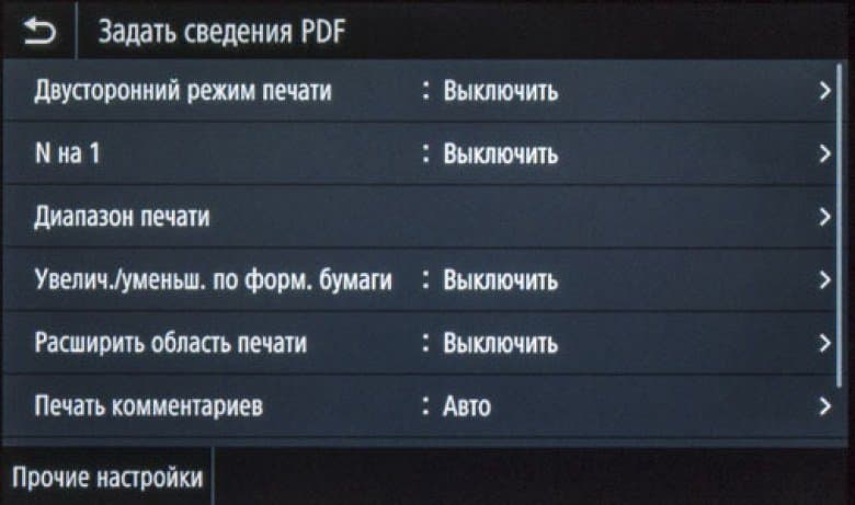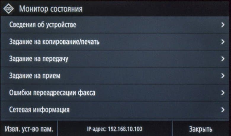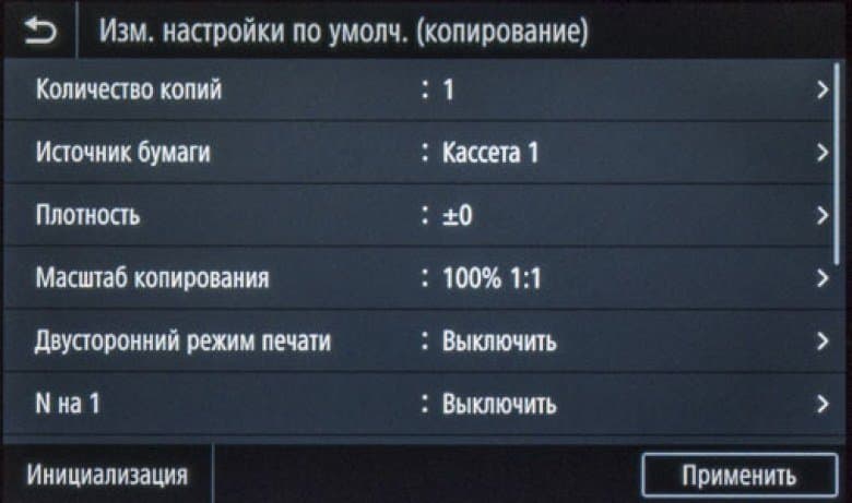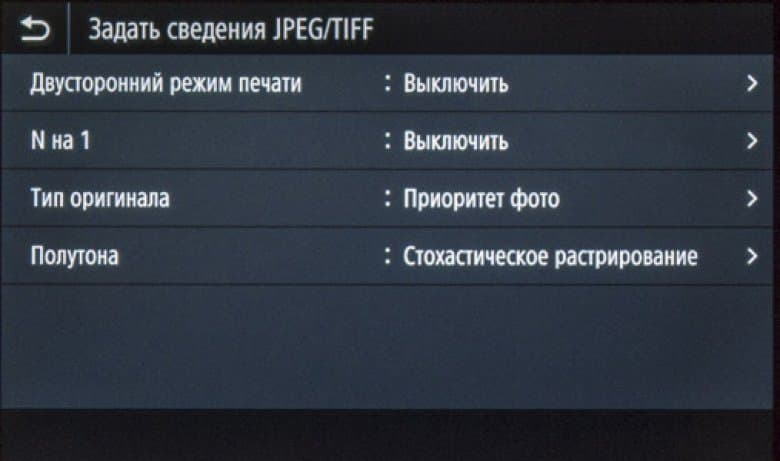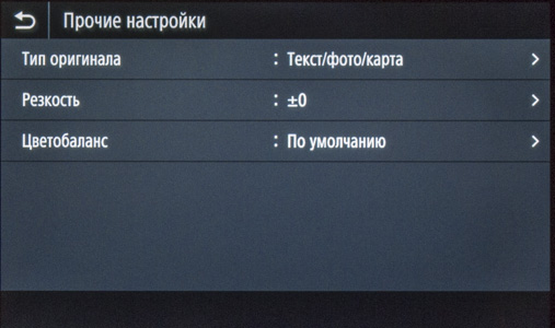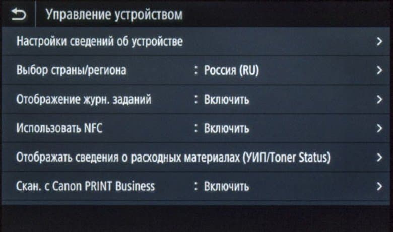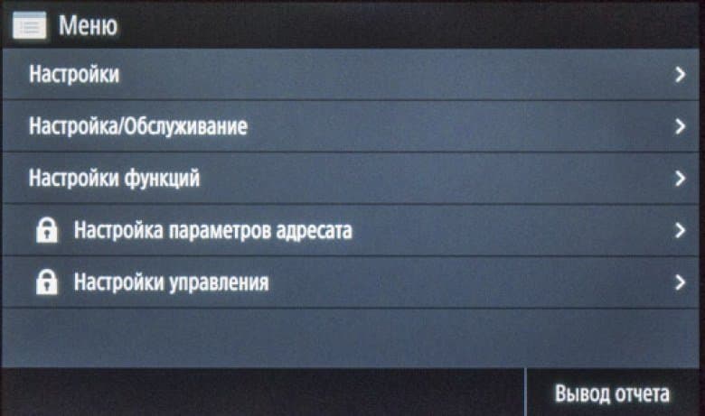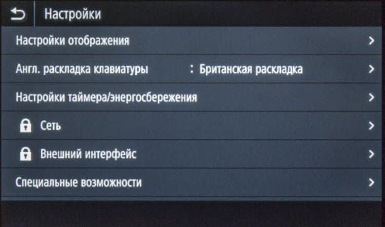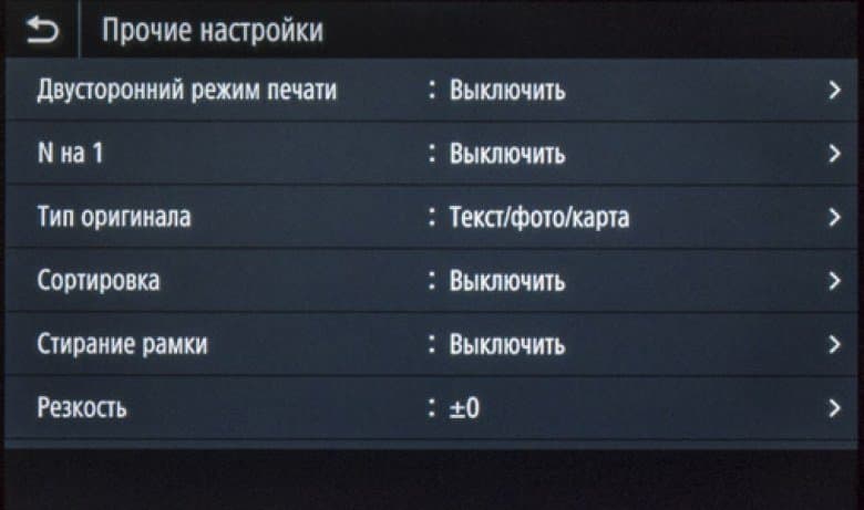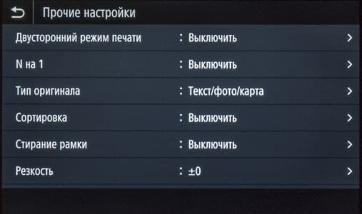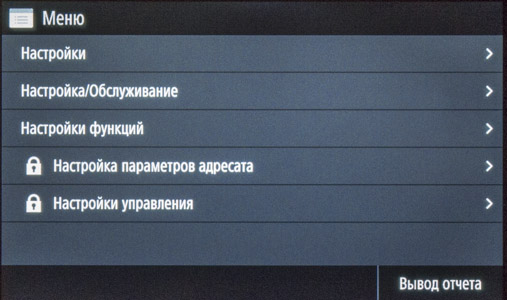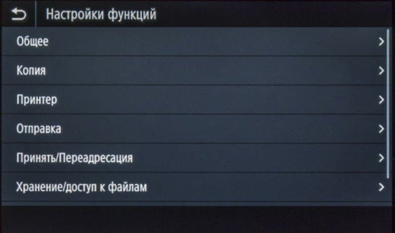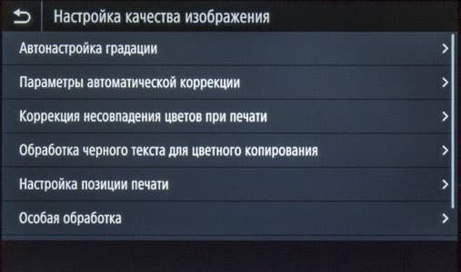 Как сказано чуть выше, экранное меню очень похоже на имеющееся в других моделях Canon, что облегчает «общение» с новым аппаратом в случаях, когда уже имеются другие МФУ данного производителя, пусть и иного класса. Соответствие не полное, в деталях отличий немало, поэтому рассмотрим структуру поподробнее.