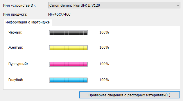 Расходными материалами являются картриджи. Хотя в инструкции они именуются «картриджами с тонером», но отдельных drum-картриджей в устройствах данной серии нет, используемые картриджи содержат еще и фотобарабаны. Таким образом, замена расходных сводится к очень простой операции, да и номенклатура для закупки сводится всего к четырем позициям, хотя, возможно, это и не самый лучший вариант с точки зрения себестоимости отпечатка.