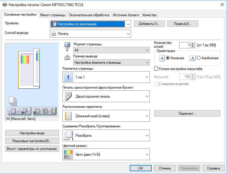 Использовалась офисная бумага класса А плотностью 160 г/м² с соответствующей установкой в настройках (если не указано иное). Все установки, кроме особо упомянутых, оставлены в значениях по умолчанию.