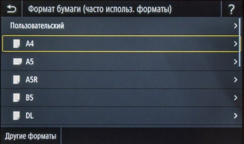 С конвертами есть маленькая хитрость: в меню МФУ при выборе формата бумаги для любого из лотков слово «конверт» отсутствует, надо ориентироваться на формат — DL или ISO-C5, и тогда на следующем экране будет подтверждено, что это именно конверт.