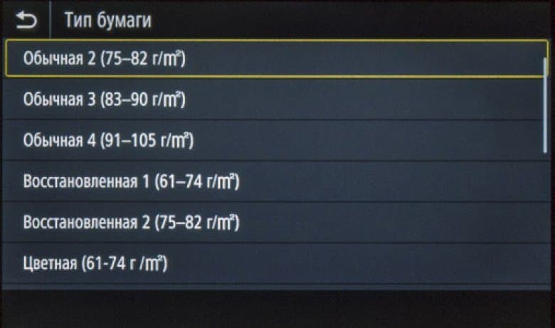 Плотность 200 г/м² обозначена для глянцевой бумаги, но такого типа носителя мы не нашли ни в меню самого МФУ, ни в драйверах. Для очень высокой плотности в меню есть установка «Плотная 3 (151—200 г/м²)», а в драйверах несколько иная: «С односторонним покрытием 3 / с покрытием 3 (151—200 г/м²)». Отметим: хорошо, что в настройках прямо указан диапазон плотностей, то есть не надо каждый раз уточнять его в мануале.