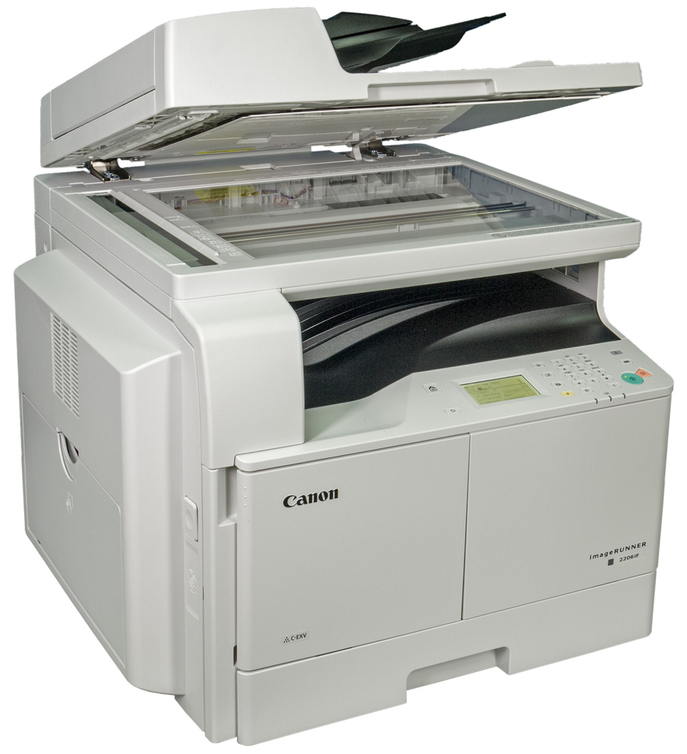 На данный момент предлагаются два устройства «три в одном», то есть принтер-копир-сканер — iR 2206 и iR 2206N (разница в штатном оснащении: например, у iR2206N есть сетевые адаптеры Ethernet и Wi-Fi, а также в списке доступных опций), и аппарат «всё в одном» (включая факс) — Canon imageRunner 2206iF, который мы и рассмотрим.