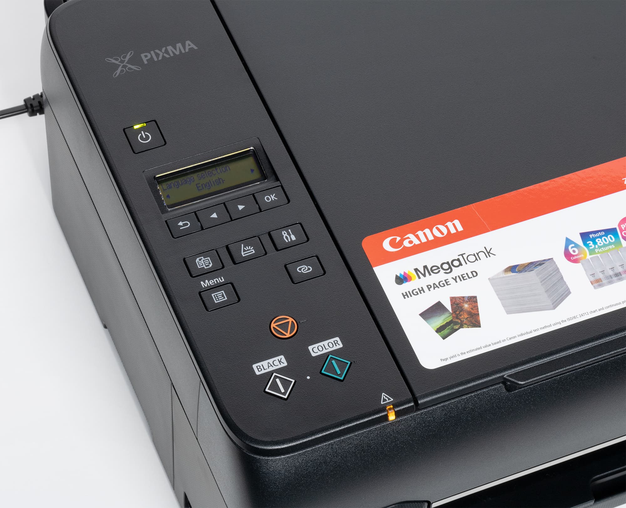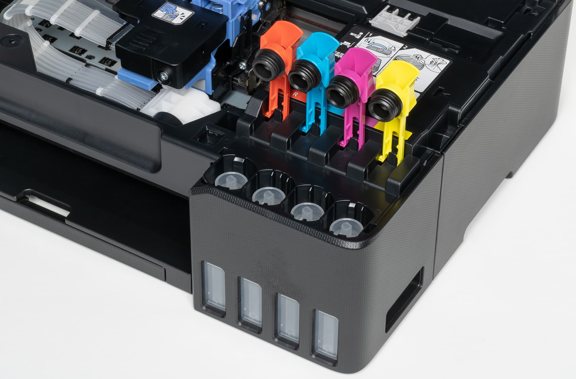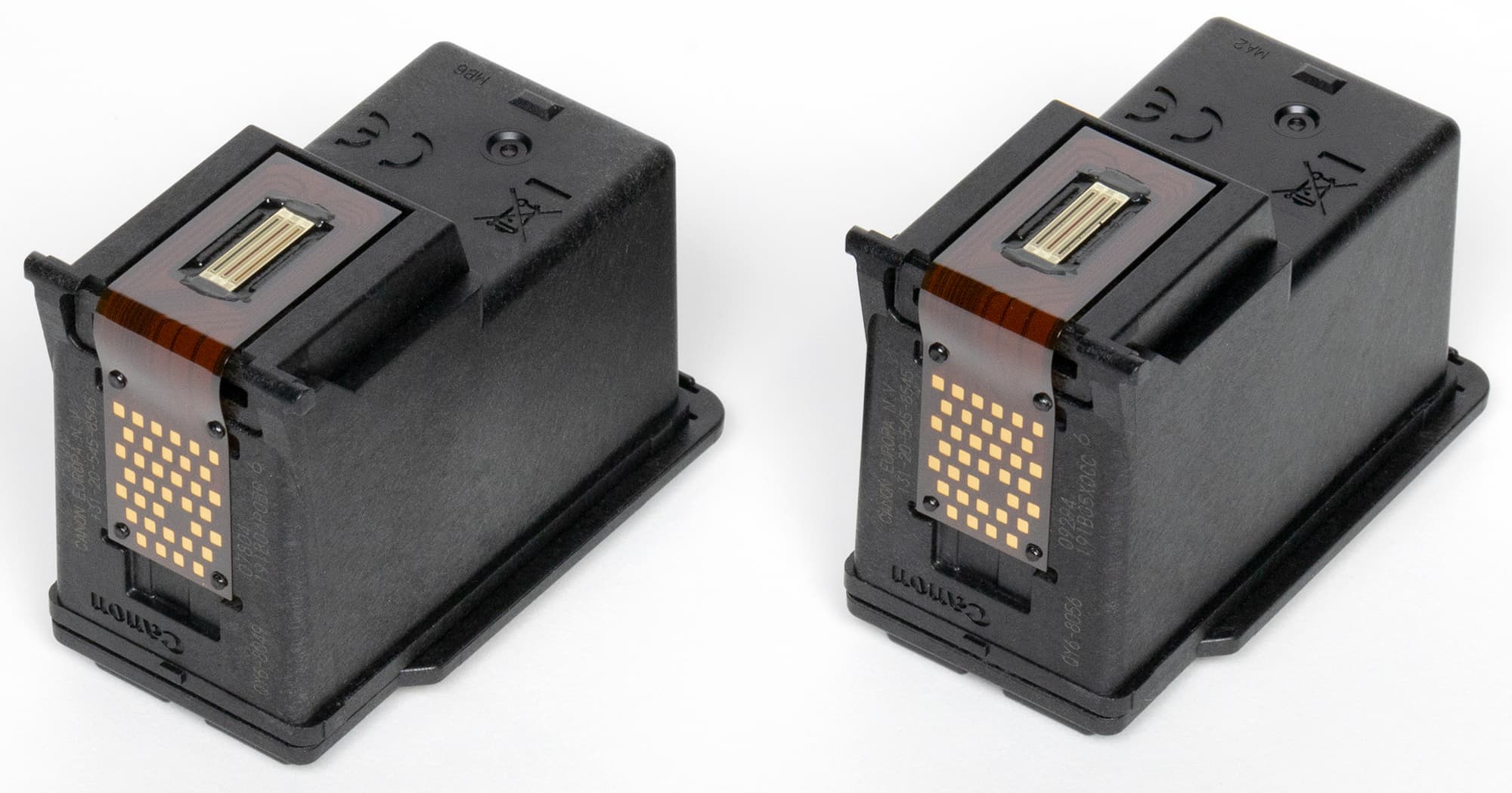 Печатающие головки, как и в ранее известных принтерах и МФУ Canon с СНПЧ, очень похожи на картриджи для других моделей серии Pixma. И точно так же пользователь устанавливает эти головки перед началом эксплуатации, но никаких пользовательских процедур для их замены в случае неисправности не предусмотрено, наоборот: извлекать головки самостоятельно не рекомендуется.