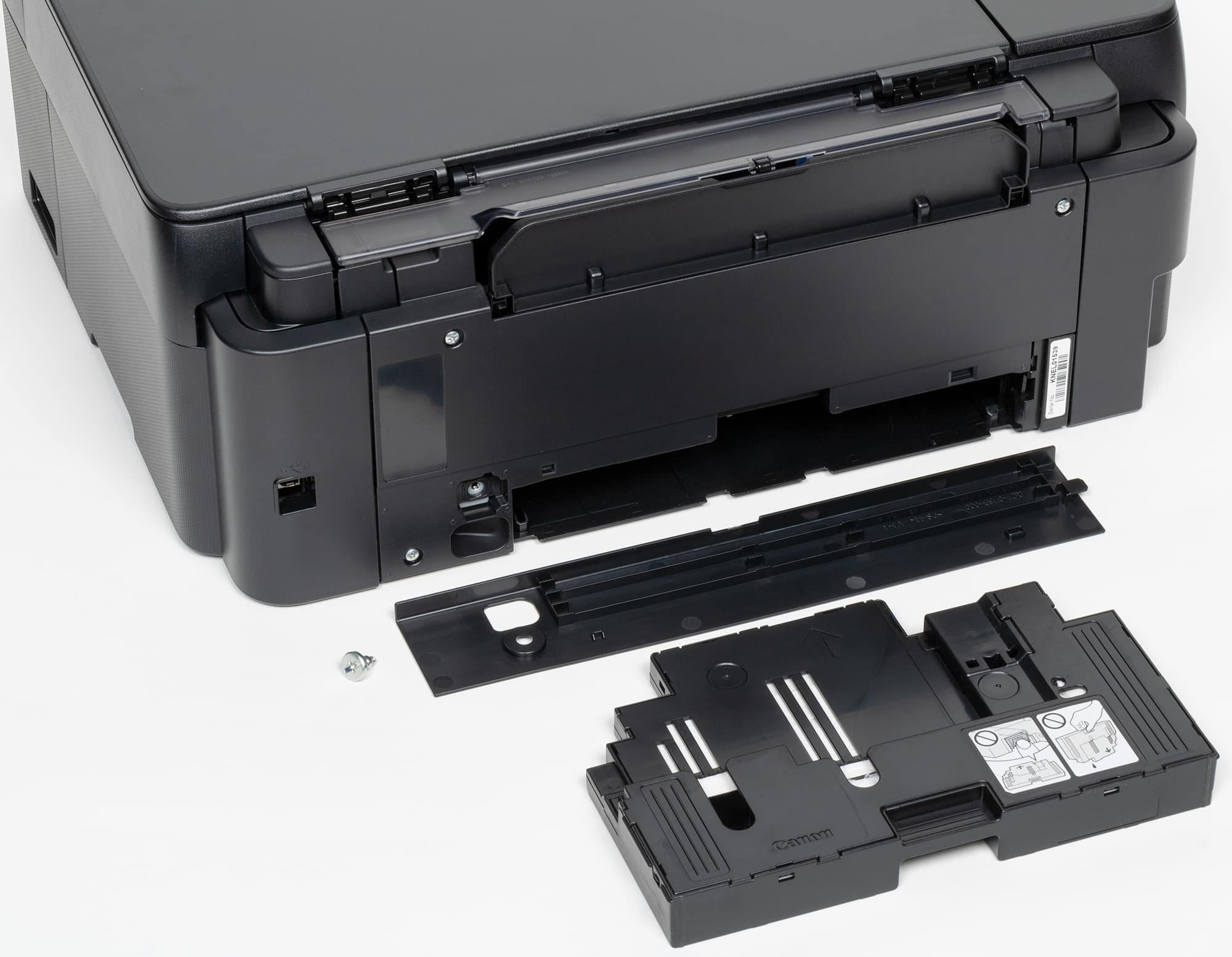 В новой модели, как и в протестированной нами недавно Pixma G3420, предусмотрена самостоятельная замена абсорбера (или «памперса») — устройства сбора чернил, вытекающих из головок, например, во время их прочистки соответствующими сервисными процедурами. Абсорбер тоже время от времени надо заменять, и если в очень многих моделях струйных печатающих устройств (не только Canon, но и других производителей) эту процедуру относят исключительно к компетенции авторизованных сервисных центров, то владельцы Pixma G3420 и G540/640 смогут поменять «картридж для обслуживания» (именно так инструкция именует узел абсорбера) самостоятельно.
