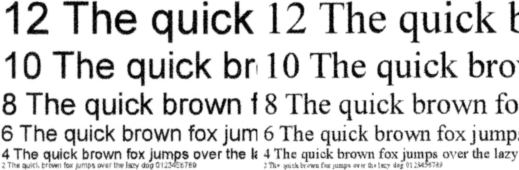 Отпечаток текстового образца, сделанный с высоким качеством, выглядит практически так же.