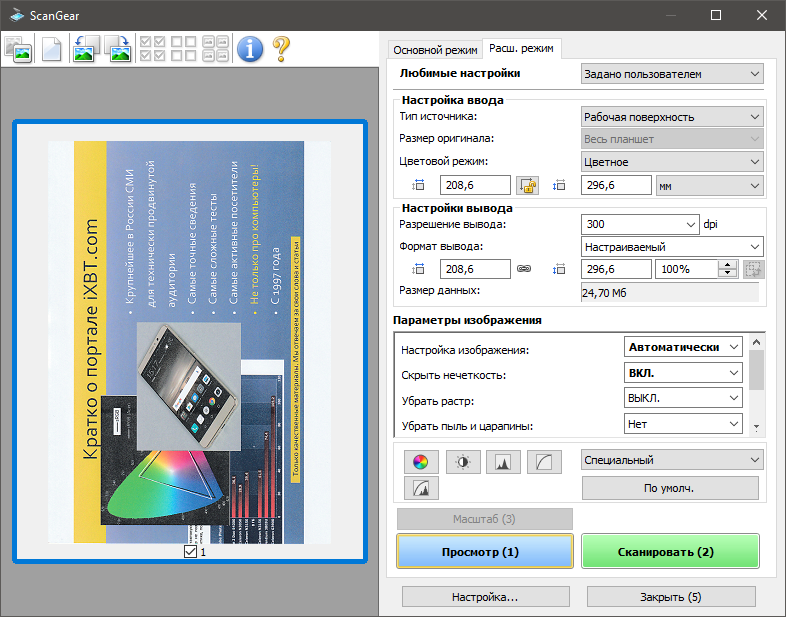 | Глубина цвета (на входе / на выходе) | цвет: 16/8 бит каждый; оттенки серого: 16/8 бит |