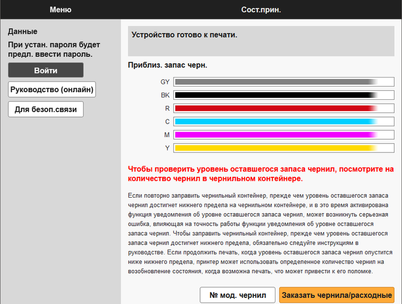 Стенки чернильных контейнеров полупрозрачные, а в пластиковом корпусе аппарата спереди и по бокам сделаны окна для визуального отслеживания уровня жидкости.