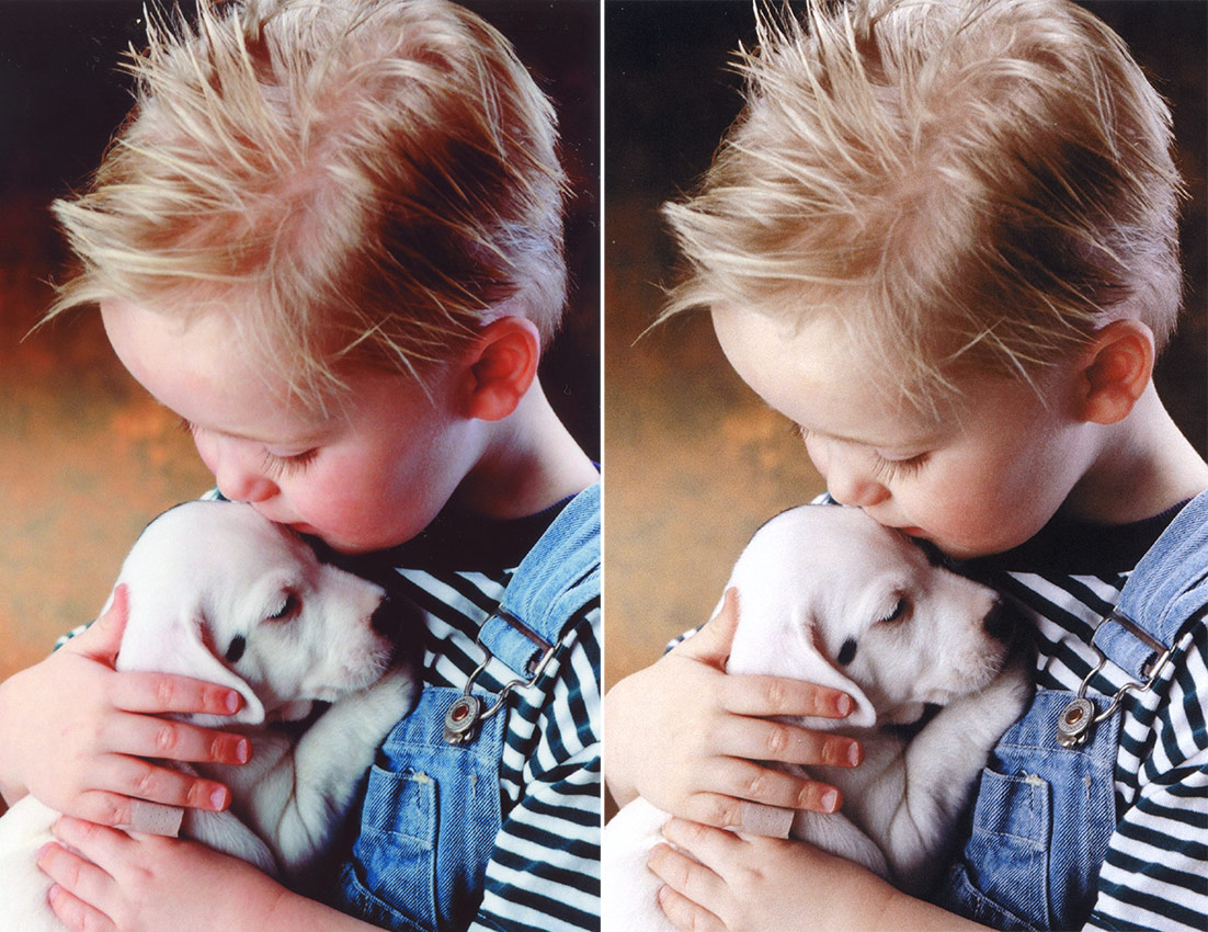 Пожалуй, основное замечание к этому отпечатку — не совсем корректная передача фактуры поверхности, на которой стоят женщина и собака, но с этим справляются далеко не все принтеры, в том числе шестицветные.