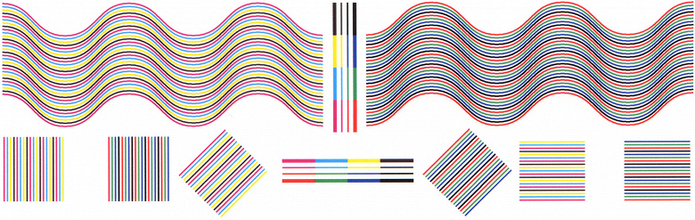 Совмещение цветов по вертикали и по горизонтали очень точное, тонкие линии воспроизводятся хорошо, без заметных даже при увеличении разрывов, на тонких изогнутых линиях нет перетеканий и ступенек.