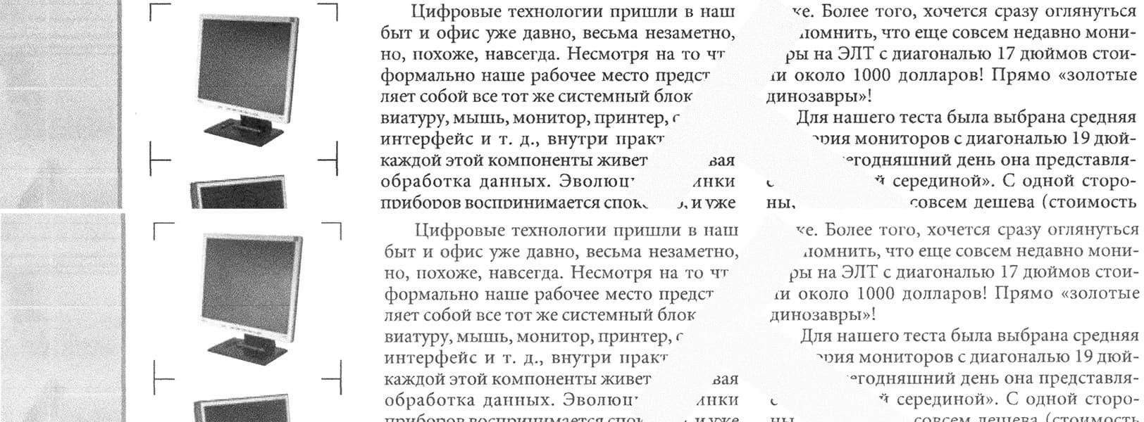 Правда, там, где таких заливок нет, обнаружить полосы сложно. А текст в обоих случаях читается нормально, разве что долгая работа с «экономными» отпечатками сильнее напрягает глаза.