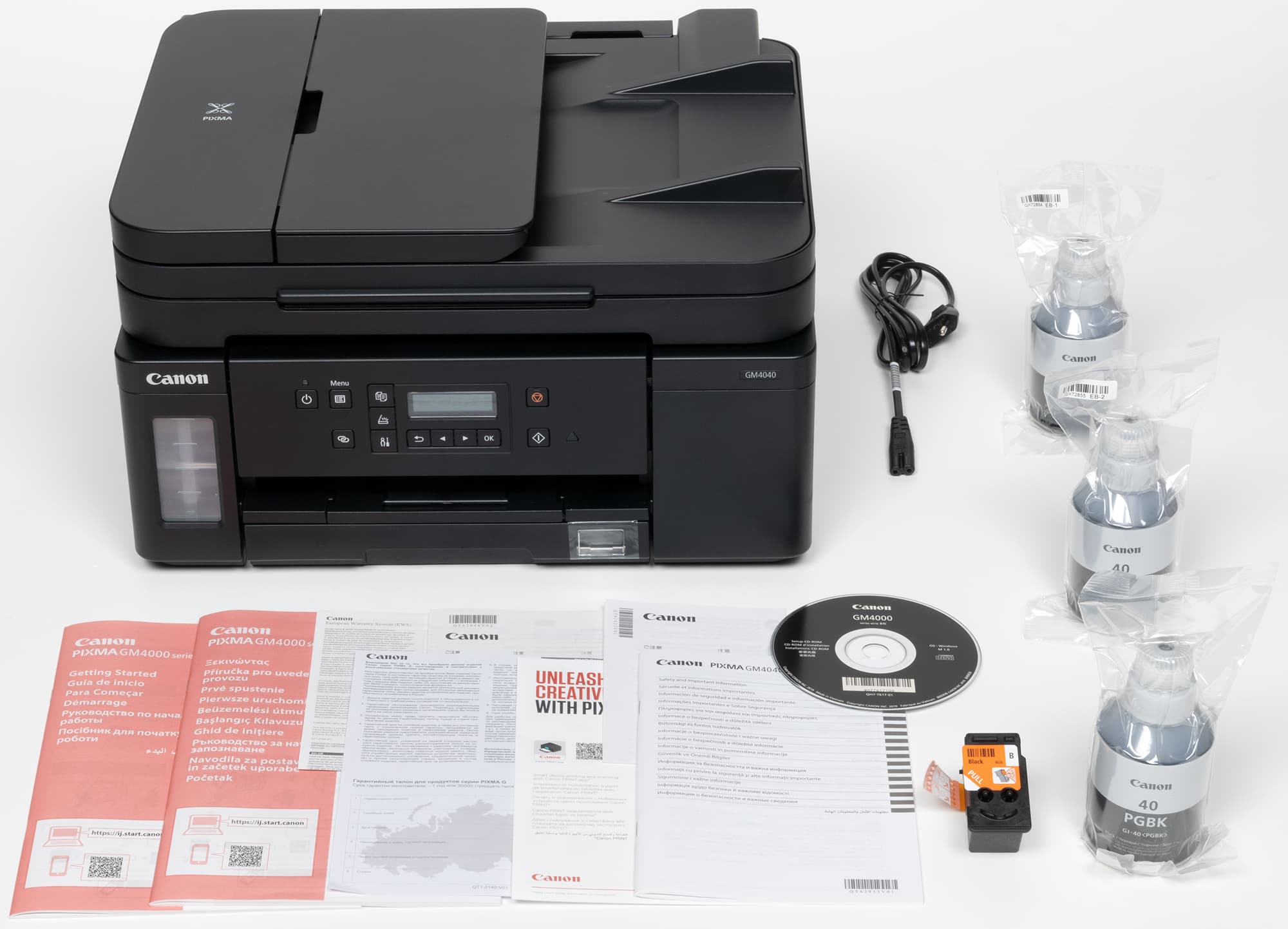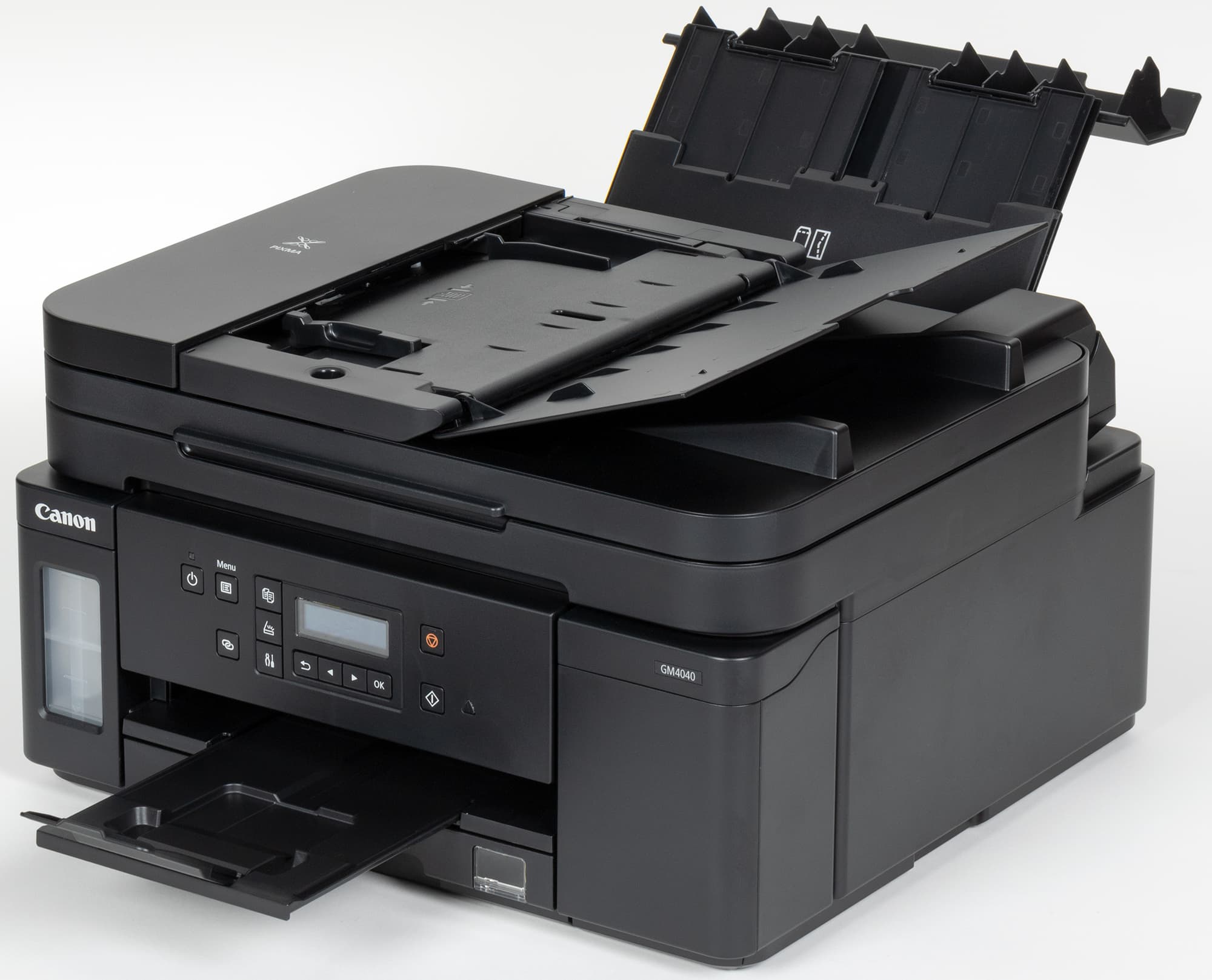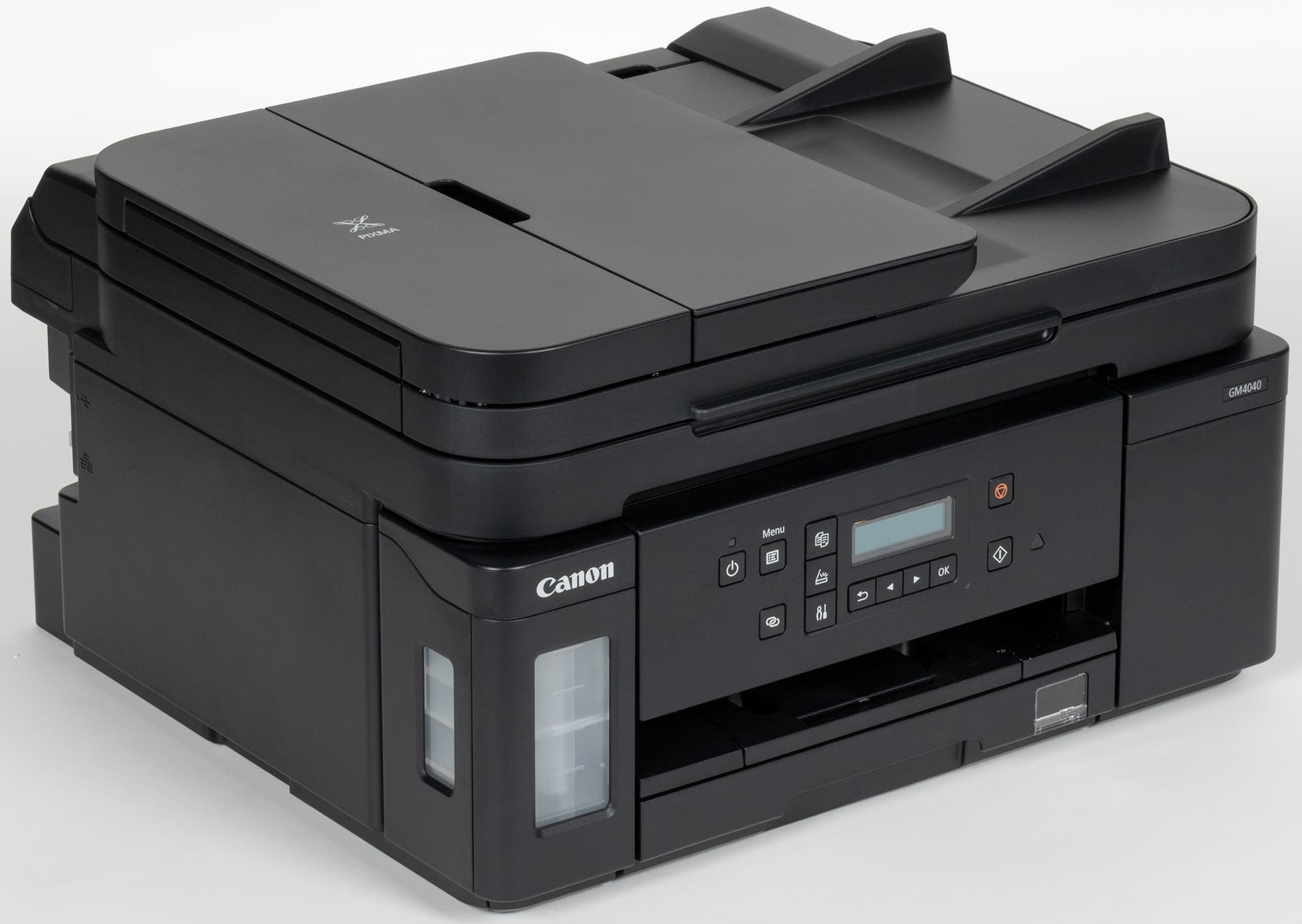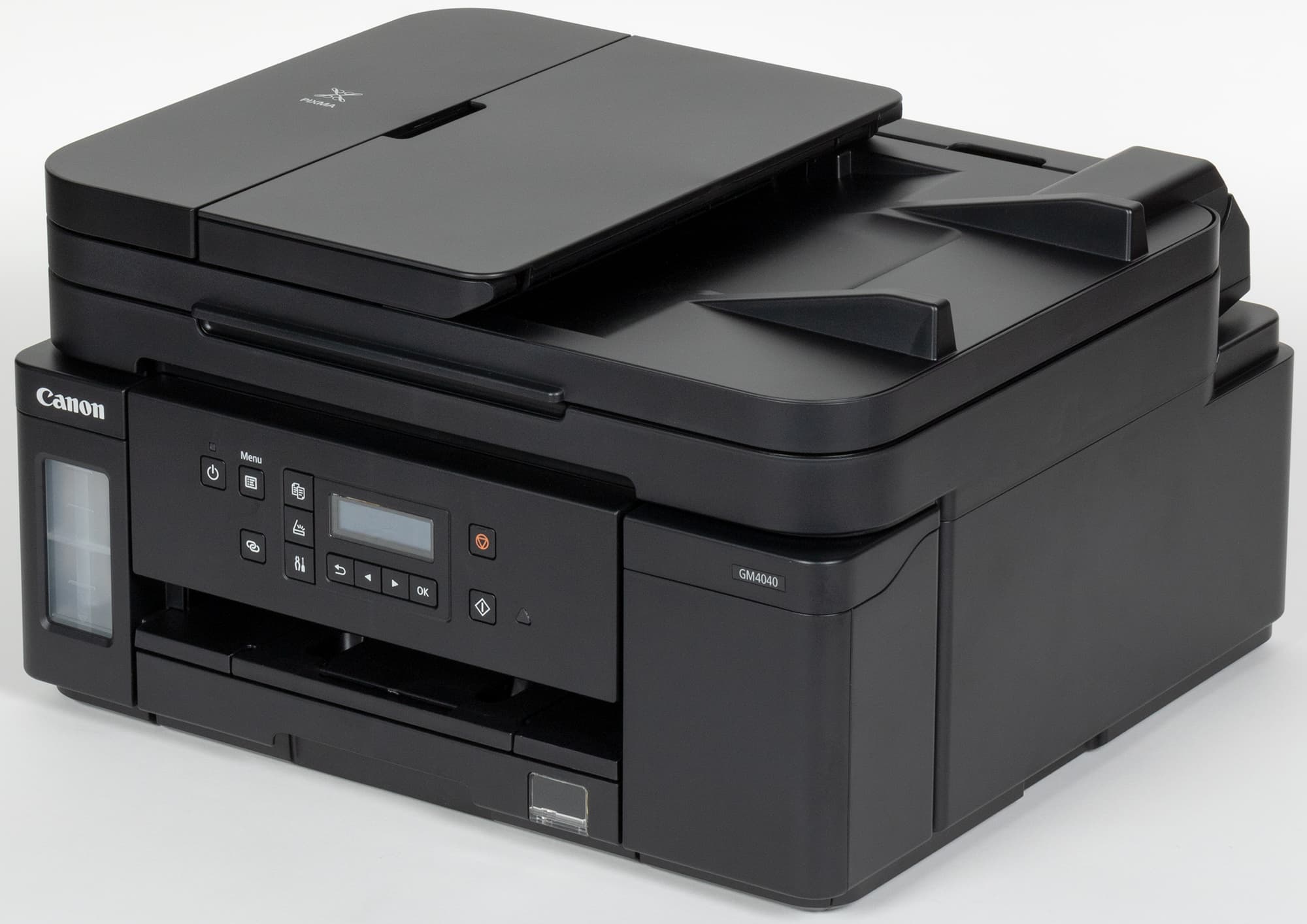 Есть такие устройства и в линейке Pixma G компании Canon: в одном из обзоров мы упоминали черно-белый принтер GM2040, а теперь рассмотрим монохромное МФУ «3 в 1» (или, как его именуют в официальных материалах, многофункциональный принтер) Canon Pixma GM4040.