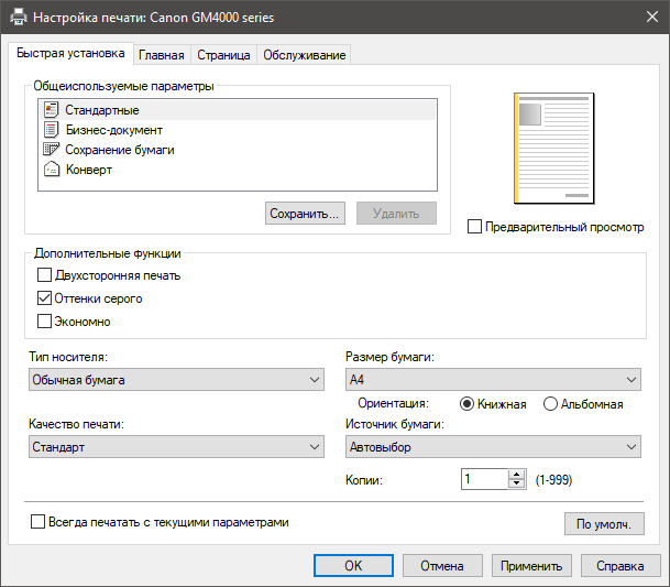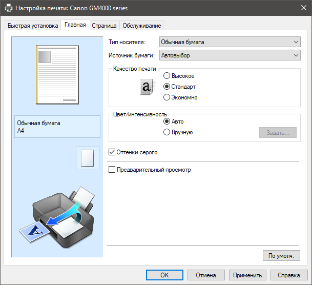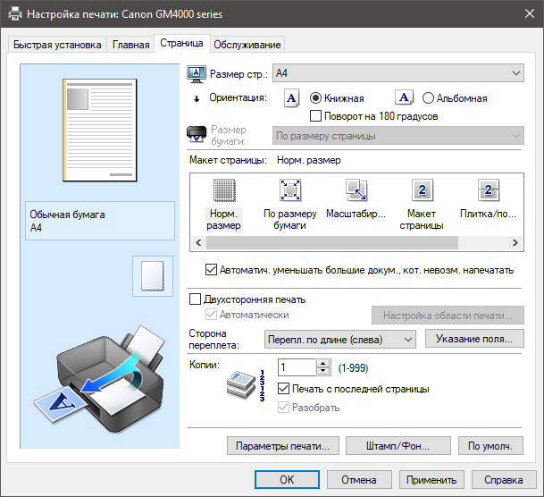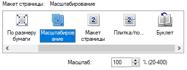 | Изменение масштаба | 25%—400% с шагом 1%; печать на весь лист |
