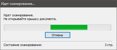 Во время сканирования отображается окно с прогресс-индикатором и подсчетом обработанных оригиналов.