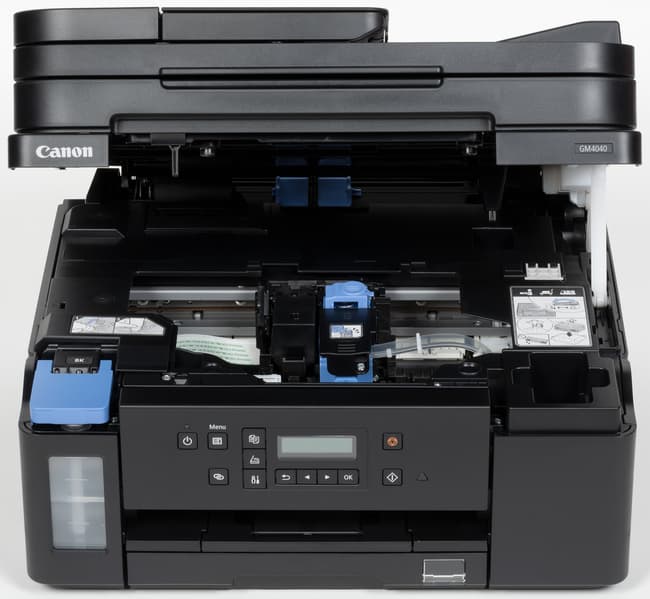 Модель Canon Pixma GM4040 нельзя назвать уникальной, подобные монохромные устройства есть и у других производителей. Выделяет ее из общего ряда возможность установки картриджа CMY, чтобы получить цветную печать; правда, реализовано это на основе изменения конструкции полноценного цветного МФУ, а не в виде самостоятельной разработки, что привело к некоторым шероховатостям, хотя и не слишком значительным. Тем не менее, эта опция вполне может склонить потребителя, выбирающего подобный аппарат, к покупке данной модели Canon: можно долго спорить, что лучше — струйная или лазерная печатающая техника, но уж точно ни один лазерный принтер не может предложить такого расширения возможностей.