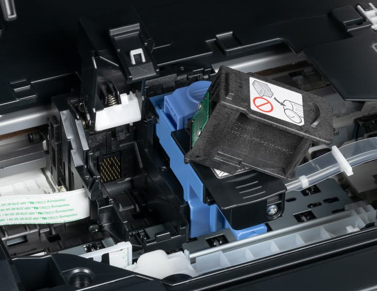 При первом включении должна быть выполнена инициализация — процедура первоначального заполнения чернилами тракта подачи и головки. Это потребует и времени, и некоторого объема чернил, поэтому количество отпечатков с первой заправки будет меньше декларируемого.