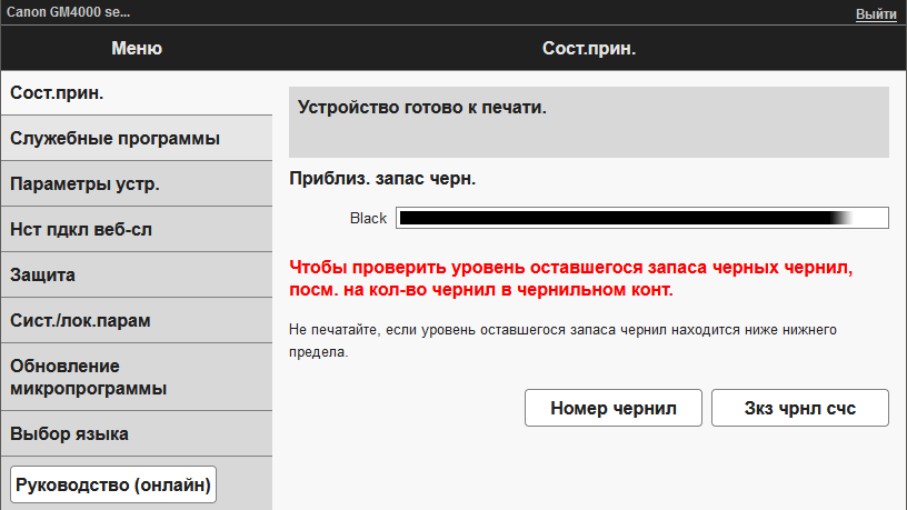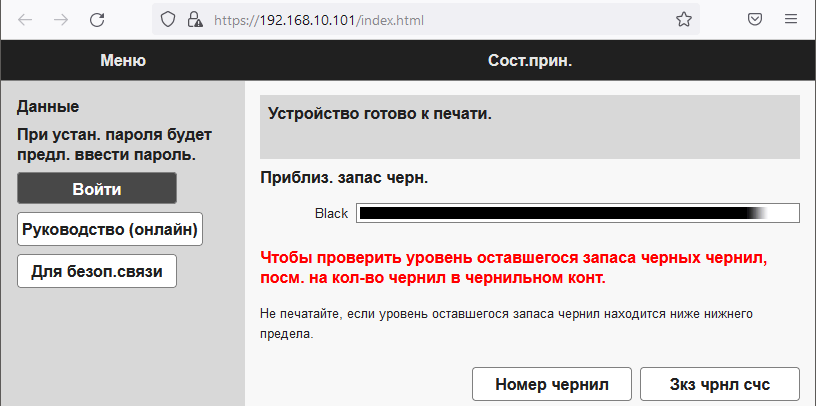 Уровень чернил по визуальной оценке снизился совсем немного, но надо учитывать немалый объем встроенного контейнера.