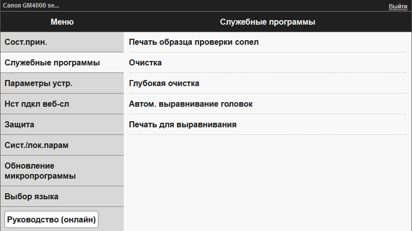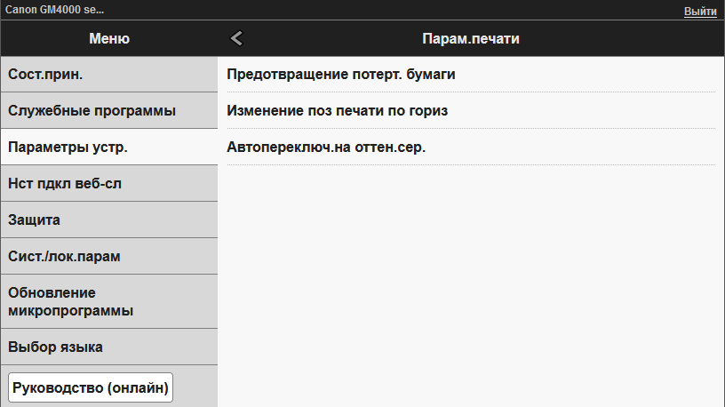 - (H) печать тиража односторонняя, бесшумный режим.