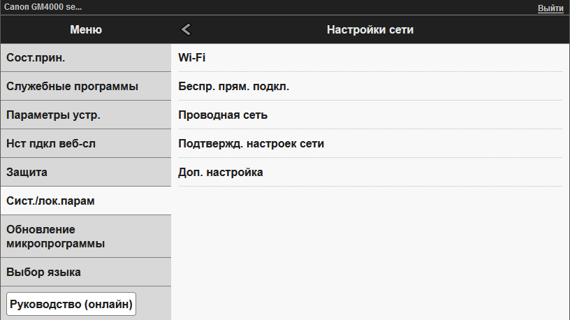 | Печать | USB | LAN | Wi-Fi | |||