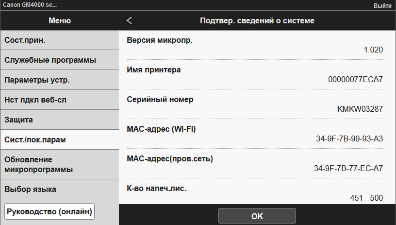 | Установки (TWAIN) | USB | Ethernet | Wi-Fi | |||