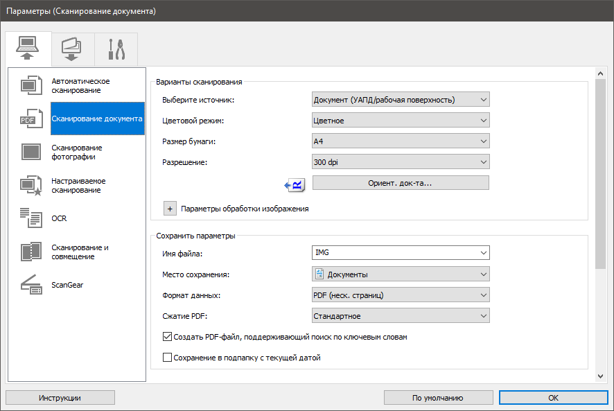 Время засекалось от нажатия кнопки «Сканировать» в ScanGear, вызванного из графического приложения, до открытия последней страницы пакета в окне приложения.