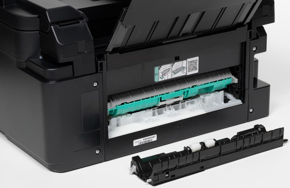 В центре задней стенки имеется съемная панель, закрывающая тракт прохождения бумаги. Пользоваться ею придется для извлечения застрявших листов.