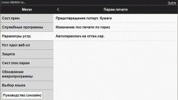 Пока система не заполнена, принтер в готовность не выйдет: индикатор Power мигает, на экране отображается слово «Canon». Примерно через 50 секунд индикатор загорелся постоянно, экран перешел к меню выбора языка (русский тоже доступен), а затем появилось предложение провести выравнивание головок для улучшения качества печати.