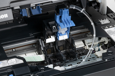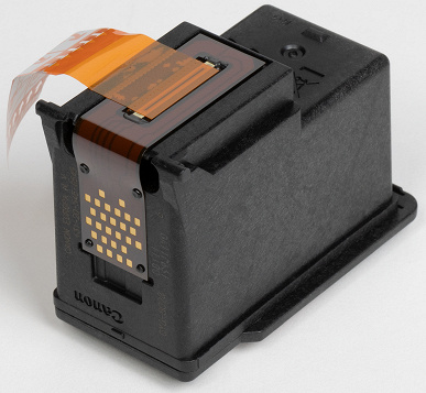 Печатающая головка (в данном случае она одна, черная), как и ранее, очень похожа на картриджи для других моделей серии Pixma. И точно так же владелец устанавливает эту головку перед началом эксплуатации, но никаких пользовательских процедур для ее замены в случае неисправности не предусмотрено, наоборот: извлекать головки самостоятельно не рекомендуется.