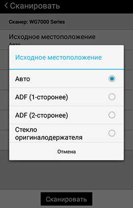 Прямого выбора между сканированием со стекла и с автоподатчика нет, приоритет имеют оригиналы, помещенные в АПД.