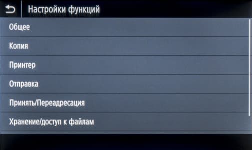 Для использования сменных USB-носителей нужно задать соответствующие разрешения в настройках, включив функции сканирования и печати в пункте «Настройки функций — Хранение/доступ к файлам — Настройки устройства памяти», после чего придется выключить и снова включить аппарат. По умолчанию оба эти действия отключены, и попытка обращения к носителю приведет лишь к появлению сообщения «Работа с устройства памяти ограничена».