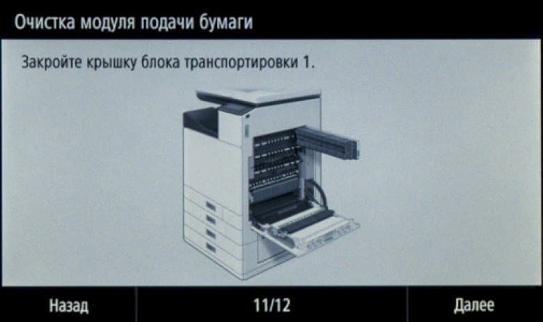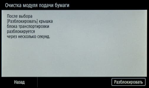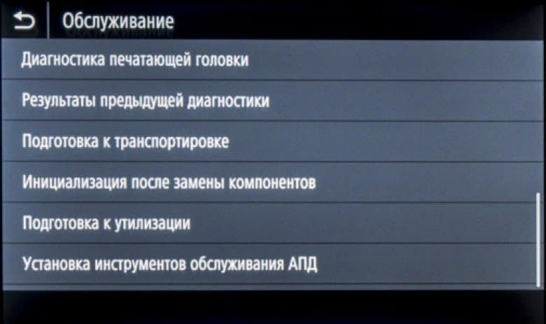 Затем предлагается извлечь стержень фиксации печатающей головки. Потом идет ряд операций, сопровождаемых вполне понятными текстами, поэтому подробно описывать их мы не будем. По окончании выводится сообщение о том, что производится обработка, которая может занять до 70 минут; аппарат при этом издает звуки, свидетельствующие о работе частей и механизмов.