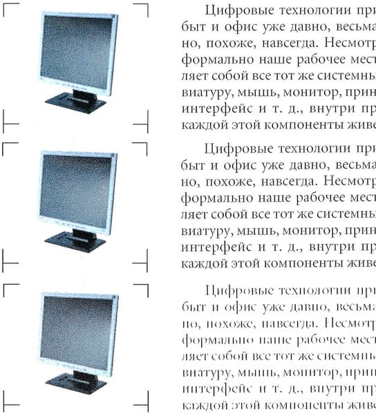 Влияние разрешения на передачу иллюстраций и элементов оформления с заливками существенно меньше.
