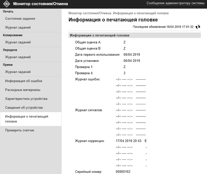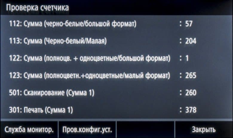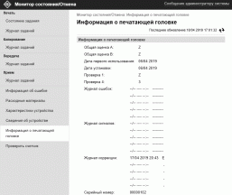 В верхнем правом углу экрана находится кнопка «Провер. счетчик», которая выводит довольно подробные сведения о наработке. Дополнительные кнопки на странице с этими сведениями позволят вывести и другую информацию, включая конфигурацию и серийный номер устройства.