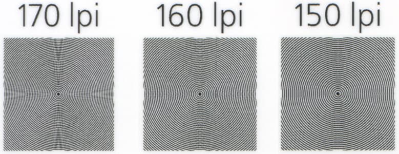 Максимальное количество различимых линий на дюйм получилось близким к предельному для нашего образца: 150-160 lpi.