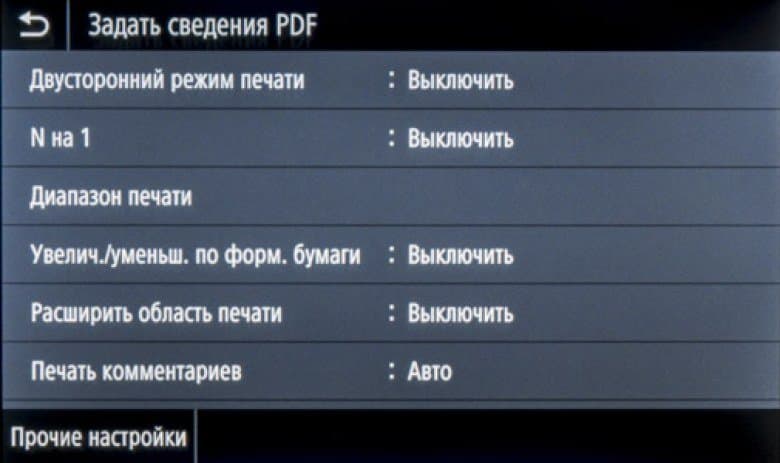 Для каждого из трех форматов есть своя специфика. Так, для PDF можно вводить пароль, если файл им защищен, и размещать до восьми уменьшенных страниц файла на одном отпечатке, для JPEG и TIFF — выбирать между приоритетом текста или фото, то есть в некоторой степени влиять на качество печати.