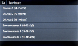 Нам как раз и досталась бумага другого сорта — Canon Photo Paper Plus Semi-gloss с плотностью 260 г/м². Ее мы подавали из универсального лотка с установкой «Плотная 6 (221—256 г/м²)». Еще раз напомним, что диапазон плотности указан только в настройках МФУ, в драйверах его нет. Кроме того, обращайте внимание на этикетки, имеющиеся в каждом лотке: если при подаче из выдвижных печать будет производиться на верхней стороне листа, то при использовании универсального лотка — на нижней.