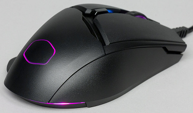 На следующей фотографии можно видеть логотип Cooler Master, который находится на боку мышки, рядом с резиновой кнопочной вставкой, ближе к кабелю.