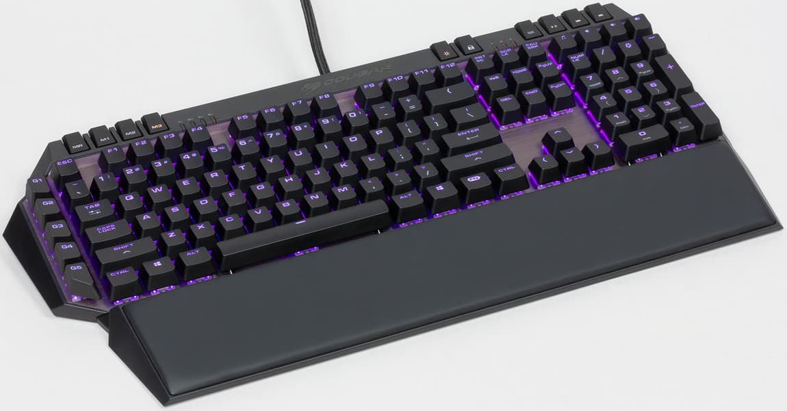 В комплекте с клавиатурой содержится подставка для запястий, краткое руководство пользователя, рекламная листовка и лист с наклейками бренда Cougar.
