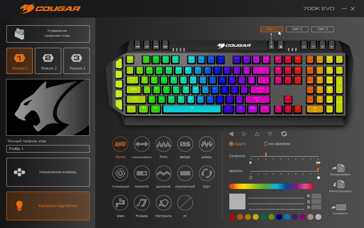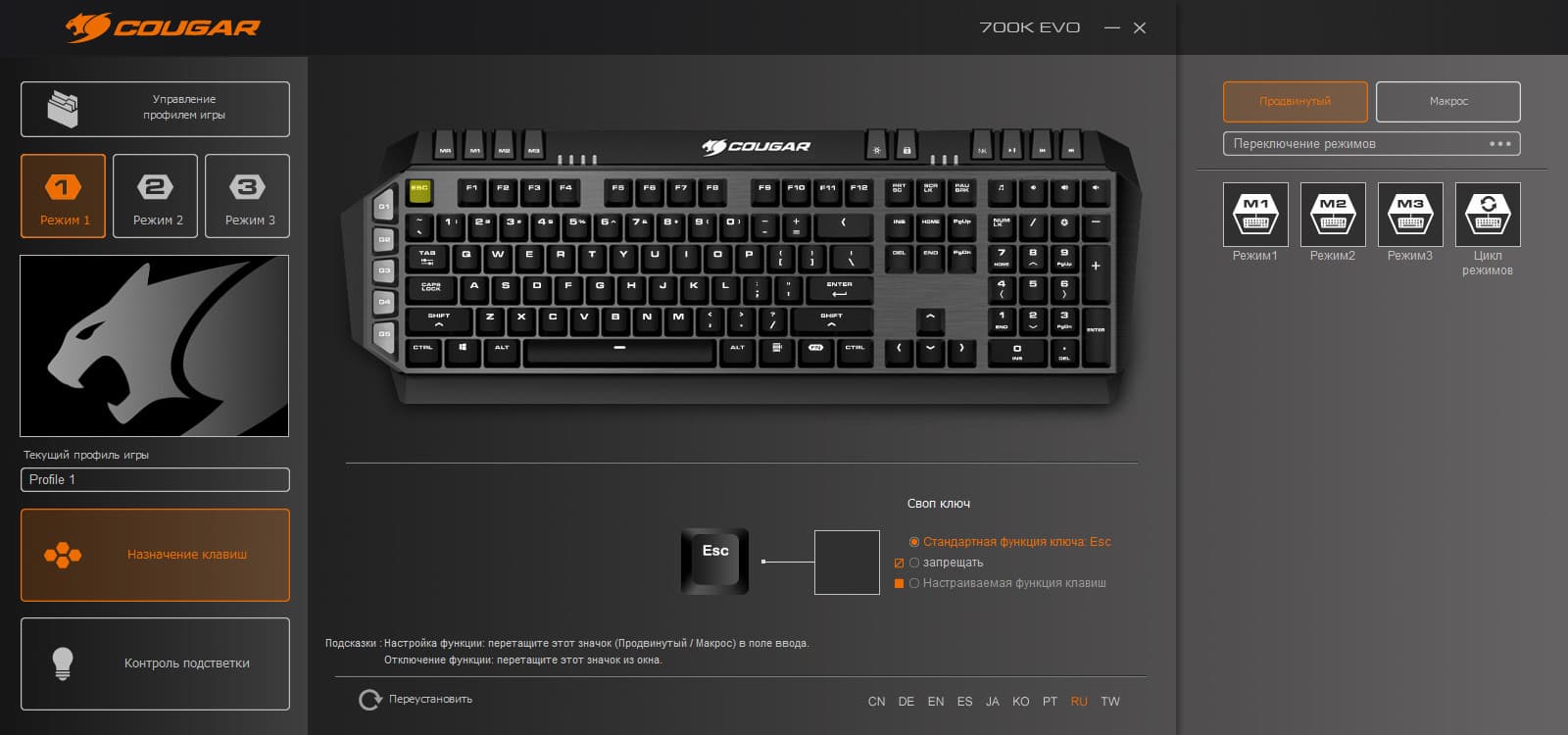 Как водится, основная часть владельцев сложных устройств или программ оперирует небольшой частью их возможностей. Cougar 700K Evo вряд ли станет исключением из правил, слишком велик запас функциональности клавиатуры и фирменного программного обеспечения. Например, трудно представить, чтобы кому-то требовалось бесконечное количество игровых профилей, также сомнительна необходимость в перепрограммировании абсолютно всех клавиш. Но важен сам факт наличия потенциальных возможностей. Иметь резерв выгоднее, чем сталкиваться с ограничениями.