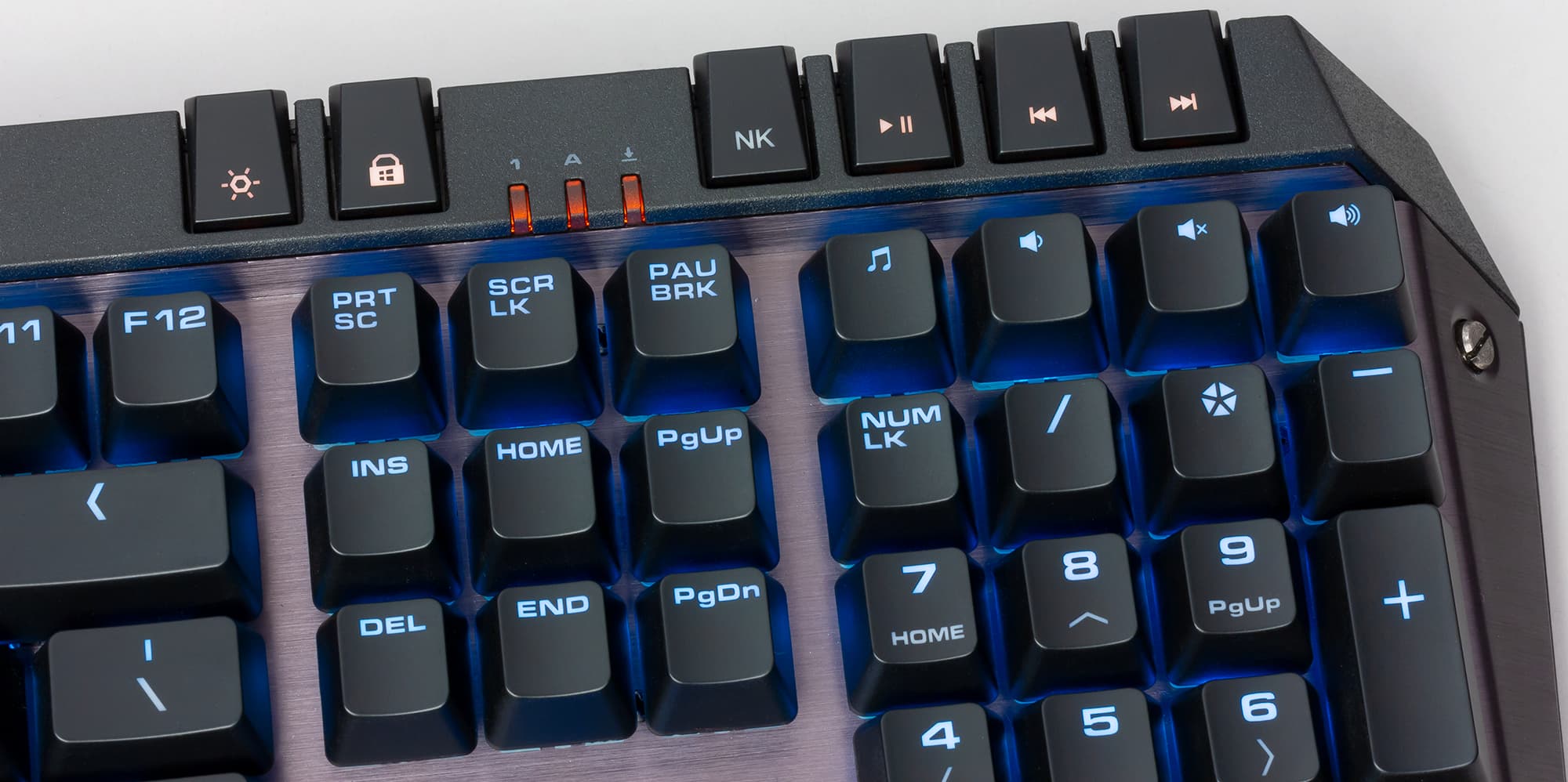 Назначение дополнительных клавиш, расположенных в верхнем ряду справа, понятно без расшифровки. Кроме одной клавиши, NK. Эта кнопка отвечает за включение режима N-Key Rollover, который обеспечивает распознавание одновременного нажатия любого количества клавиш.
