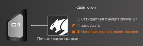 Также кнопкам присваиваются готовые и редактируемые сценарии, которые находятся в выпадающем списке блока Продвинутый. Здесь доступны такие функции, как переключение режимов, кнопки быстрого доступа, запуск программ, движение курсора мыши и мультимедийные команды. Назначение функций производится простым перетаскиванием иконок макросов.