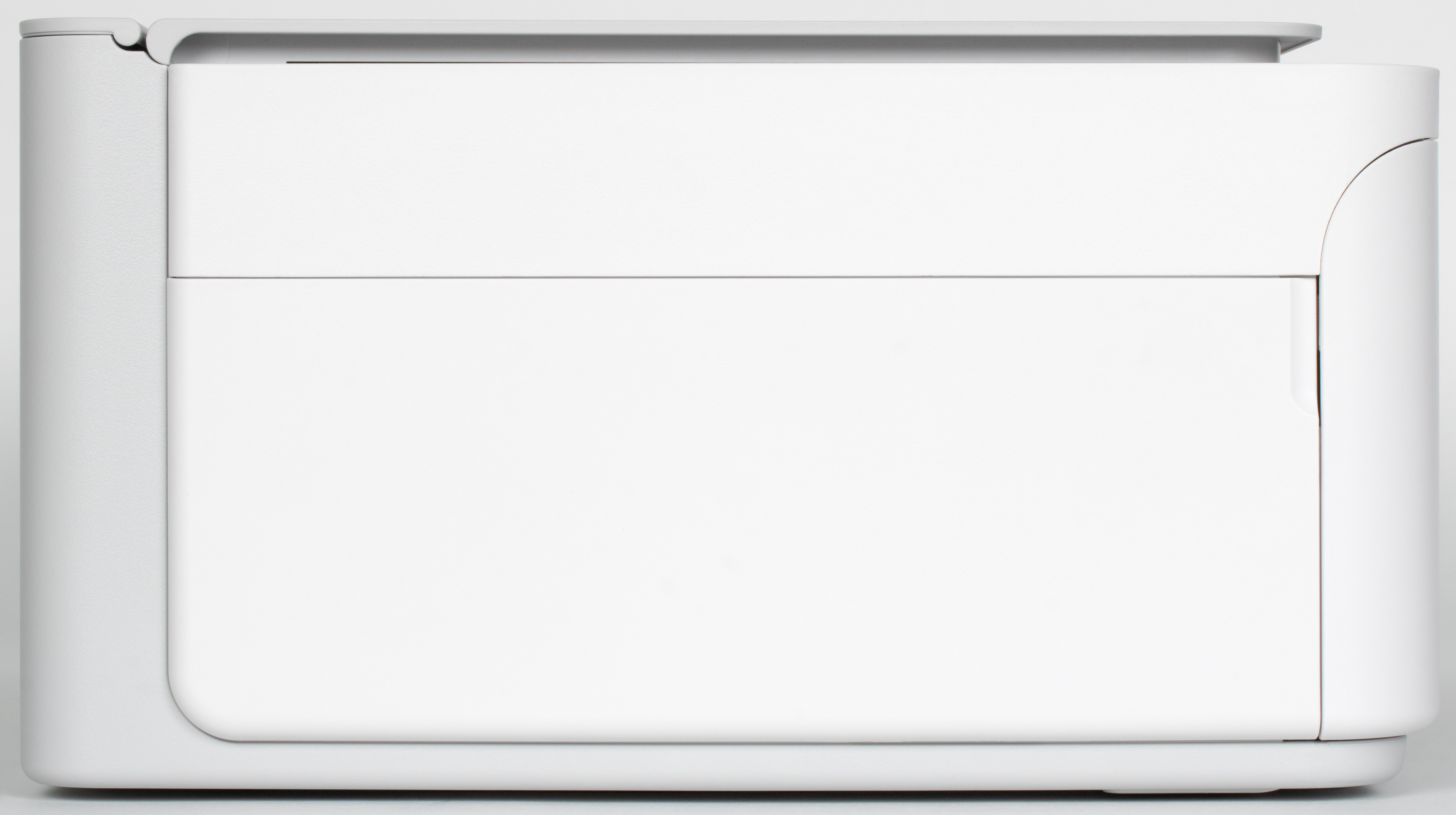 Подающий лоток расположен сзади, его крышка выдвигается вверх и откидываются на угол около 20-25 градусов от вертикали; такая конфигурация вполне стандартна для подобных струйных принтеров. Он рассчитан на 100 листов (плотность в описании не указывается, обычно подразумевается 80 г/м²), и это тоже привычно по многим побывавшим у нас аппаратам данного класса.