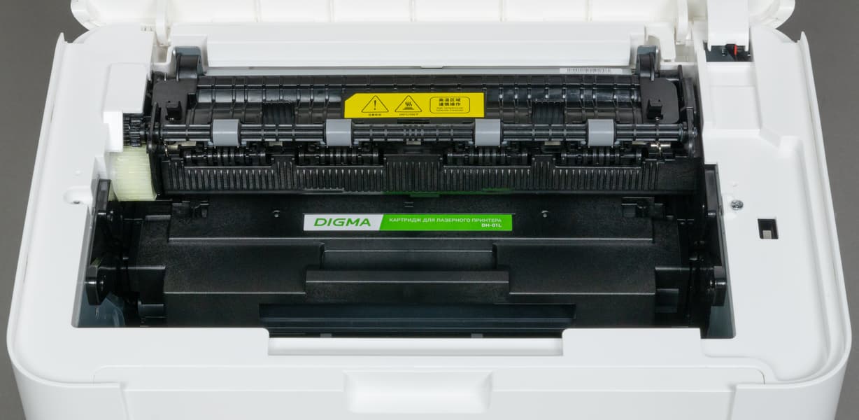Стартовый картридж имеет обозначение Digma DH-01L и рассчитан на 2000 отпечатков, такой сегодня можно купить по цене около 1800 рублей. В серии картриджей также упоминается наличие вариантов DH-01 на 1500 и DH-01XL на 3000 отпечатков, но цены на них мы пока найти не смогли.