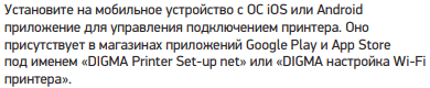 И главное: не всегда можно верить написанному — инструкция отсылает на соответствующие ресурсы за приложением «Digma Printer Set-up net» или «Digma настройка Wi-Fi принтера», но подобных названий на момент тестирования в Google Play не обнаруживалось.