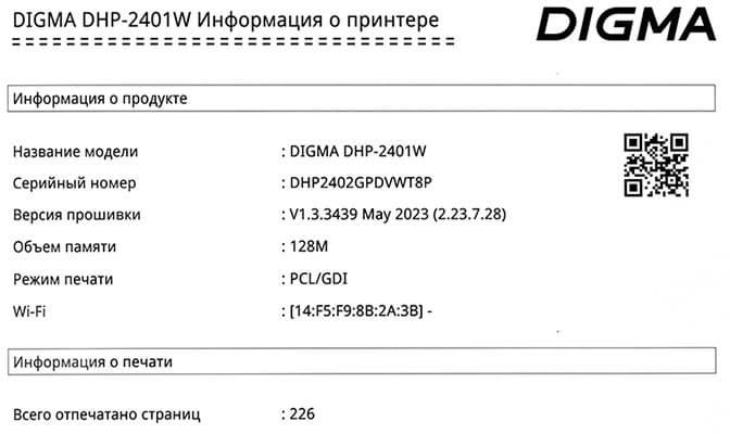 Мы рассмотрим старшую модель — принтер Digma DHP-2401W.