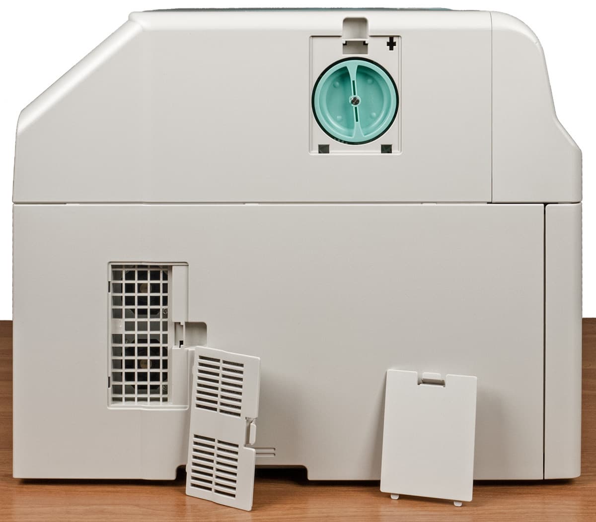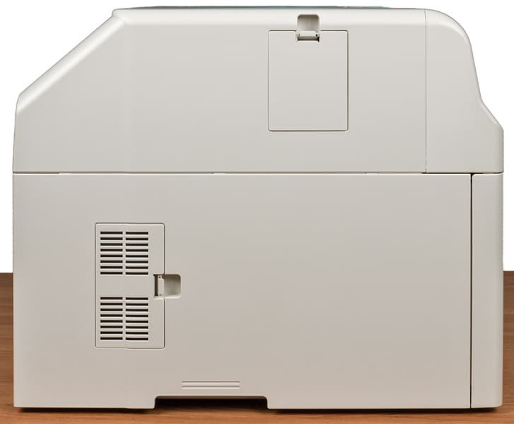 Сзади и по бокам имеются вентиляционные отверстия, к которым при выборе места для установки надо обеспечить свободный доступ воздуха. Кроме этого, при замятии бумаги доступ понадобится к задней и левой стенкам, где под крышками находятся специальные рукоятки для устранения замятий.