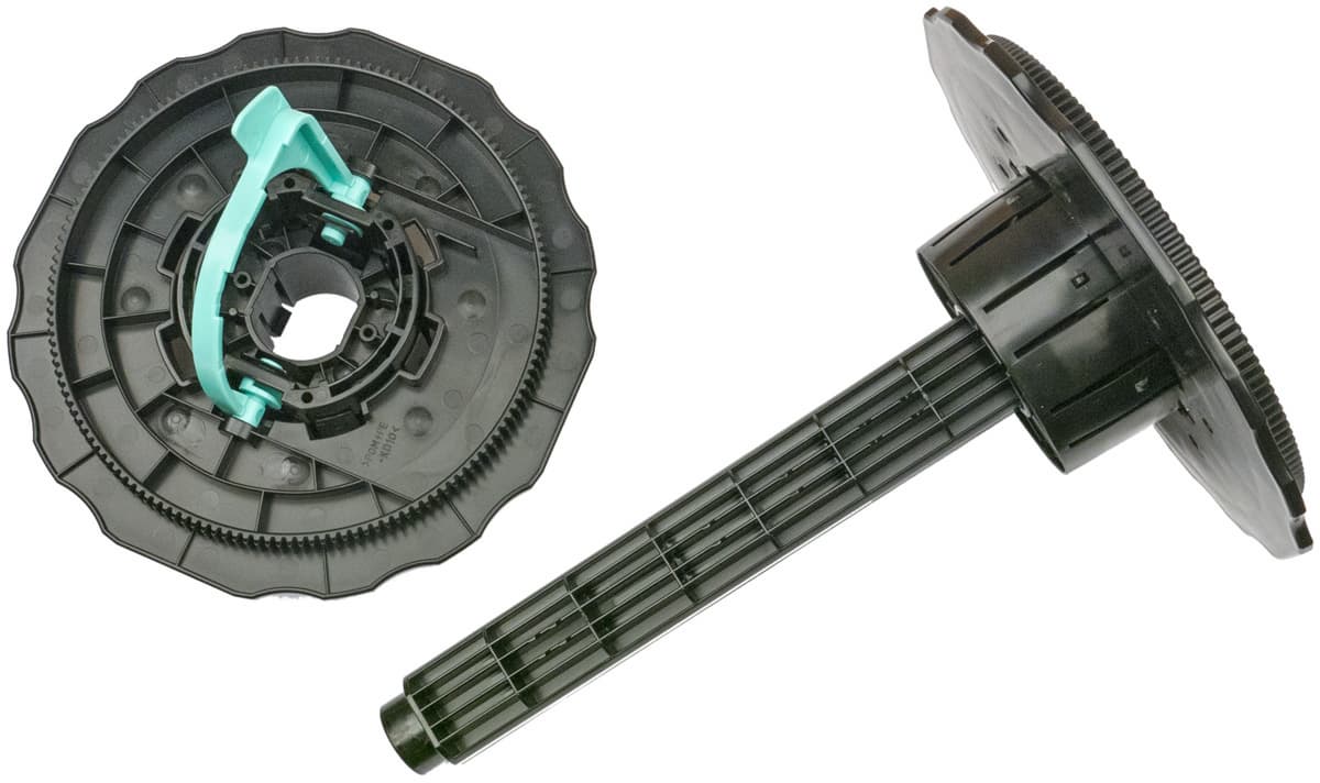 В целом процедура установки или замены несложная, хотя и требует определенного навыка. Но даже у опытного оператора она займет некоторое время, поэтому в случаях, когда необходима частая смена рулонов, можно приобрести дополнительные катушки Spindle Unit DE J.