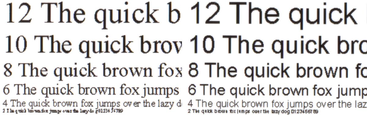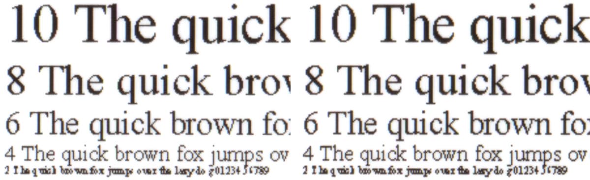 Результат получился очень хорошим: уверенная читаемость шрифтов с засечками и без начинается с 4-го кегля, мелкие детали и контуры букв передаются отчетливо, заливки плотные, черный цвет не имеет сколь-нибудь заметных оттенков.