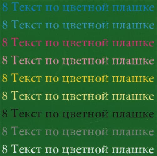 Буквы разных цветов по цветной плашке передаются неплохо: